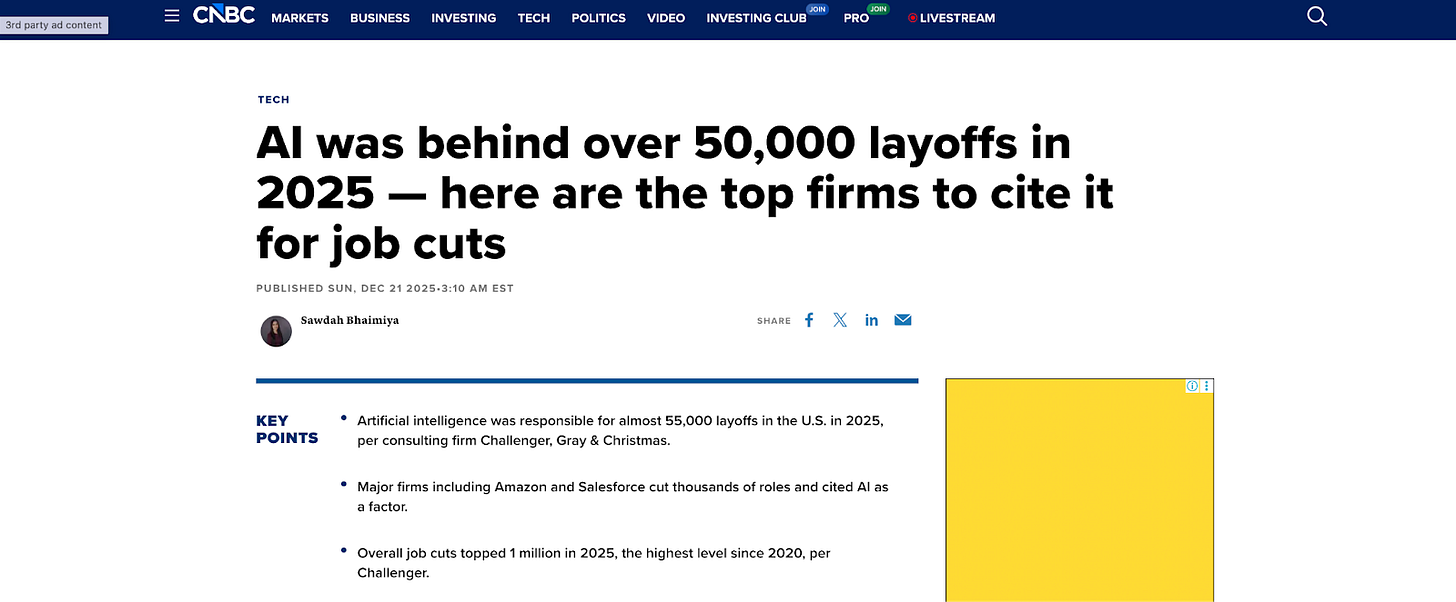 The first stack makes me worry. It shows that over 55,000 people lost their jobs in 2025 in MNCs because of AI.