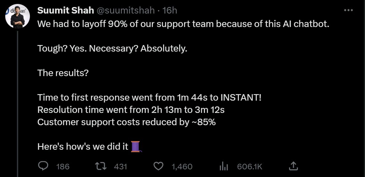 They’re trading workers (the old car) for AI systems that can grow and scale (the new electric car).